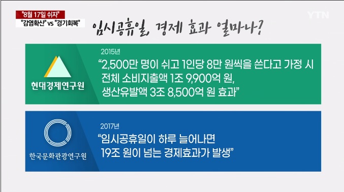 그리고, 2015년 메르스 사태로 내수가 완전히 꽁꽁 얼어붙었을 때 내수시장을 살리기 위한 일환으로 8월 임시공휴일을 지정을 했었습니다.