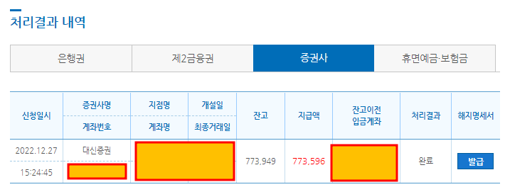 전 은행권과 증권사로부터 잠자고 있는 숨어 있던 내 돈을 모두 잔고이전하여 입금처리 하였습니다.