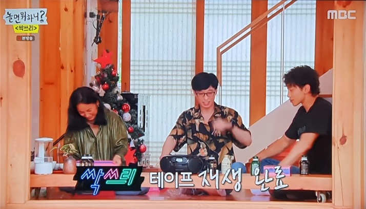 뉴트로 감성을 위해 제작진이 준비한 싹쓰리 곡 테이프. 90년대 감성을 듬뿍 담아 테이프 플레이어에 넣고