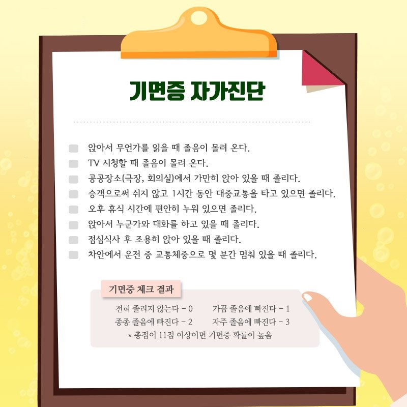 기면증에 대한 셀프 진단 (자가진단) 해보세요..