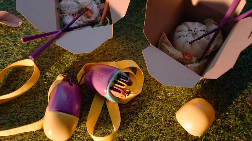 나이프, 포크, 스푼, 스트로우(빨대), 젓가락으로 구성되어 있으며 휴대하기 쉽게 모두 접히게 디자인되어