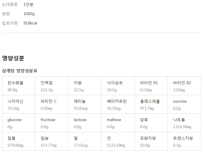※ 삼계탕 (칼로리 918kcal)
