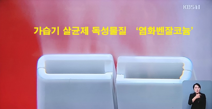 수년전 문제가 되었던 가습기 살균제를 지난해 환경부에서 일부 가습기 살균제 제품 원료인 '염화벤잘코늄'의 유해성을 새롭해 확인했었습니다.