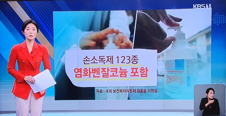 이번에 KBS가 식약처 자료를 입수하여 확인 한 결과, 시중에 판매되는 손소독제 123종에 '염화벤잘코늄'이 포함된 것으로 나타났다고 합니다. 특히 스프레이 손소독제로 알려진 '뿌리는 손소독제'는 독성물질이 눈과 호흡기로 바로 들어갈 수 있어 더 위험하다고 합니다.