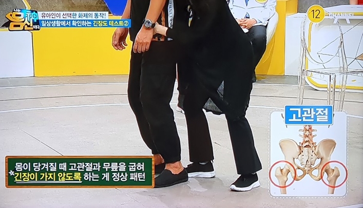 의자에 앉았다 일어났다 하는 자세만으로도 어디에 긴장이 되어 있는지 확인이 가능하다고 합니다.