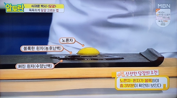 달걀을 깨 보면 노른자와 흰자가 탱탱한 것도 있지만 노른자도 흰자도 옆으로 퍼져 있는 달걀도 있습니다.