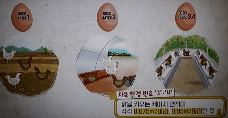 산란일자, 생산자의 고유번호, 닭의 사육환경을 나타내는 코드가 표기되어 있어 표식을 보고 신선한 달걀을 고를 수 있습니다.