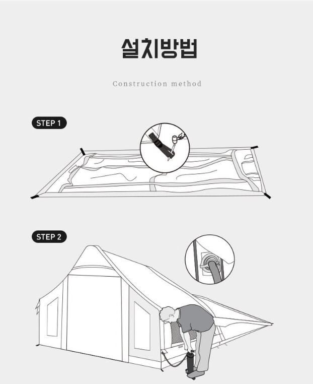 하지만, 좀 더 편한 캠핑을 하길 원하시는 분들에게는 에어텐트를 추천드립니다.