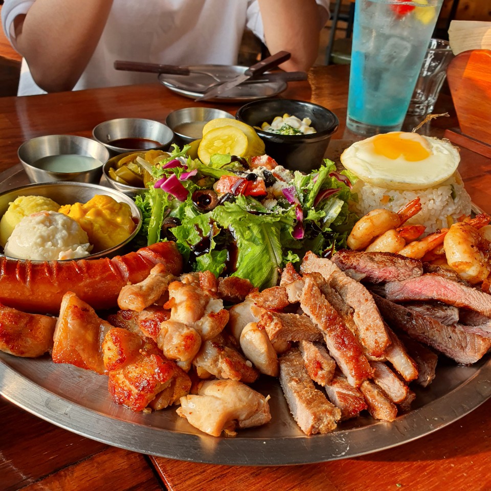주 메인메뉴... 스테이크, 치킨, 소세지, 새우, 볶음밥에 샐러드까지... 콤보셋트로 여러가지 맛을 볼 수 있어 요 아이는