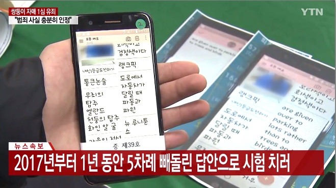 중위권 성적이던 쌍둥이 자매의 성적이 급상승하여 전교 1등을 한 것이 답안을 보고 시험을 치렀다는 증거라고 합니다.