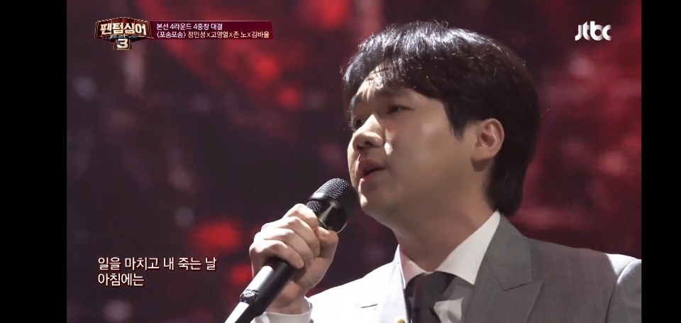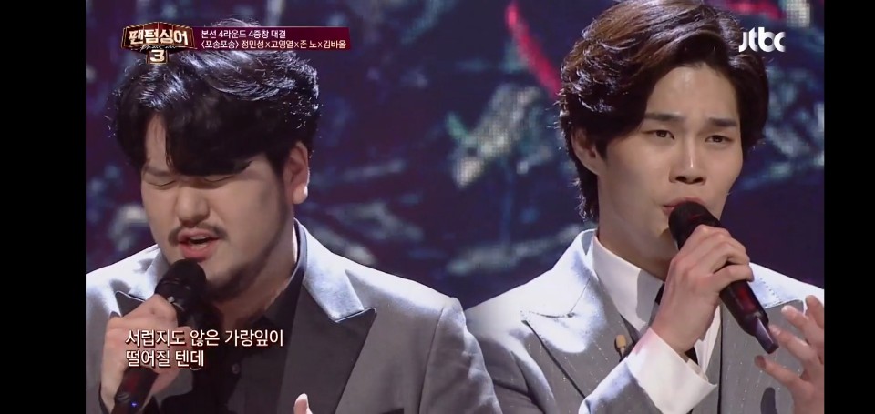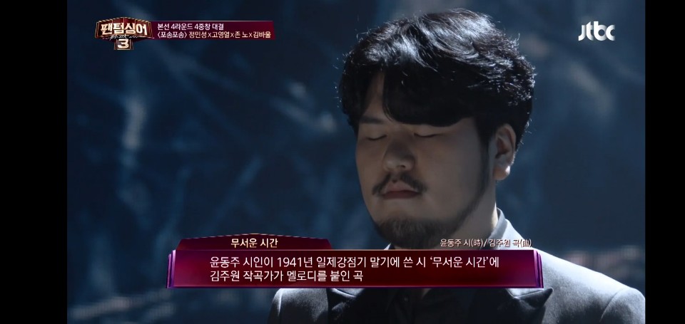6월 5일에 방영한 "포송 포송" (정민성, 고영열, 존노, 김바울) 팀의 노래를 듣고 눈물이 하염없이 흘렀습니다.