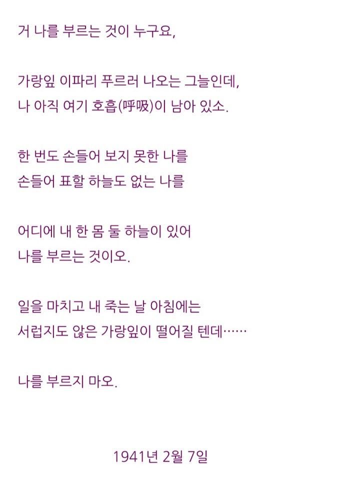 윤동주 시인은 일제 강점기에 독립운동에는 직접적으로 참여하지는 못했지만 일제의 강압에 고통받는 조국의 현실을 가슴 아프게 생각하고 고민한 젊은 시인이었습니다.
