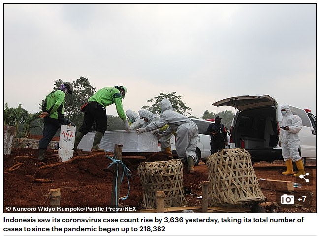 인도네이사에서는 하루 3천 명이 넘는 코로나19 신규 확진자가 발생하고 있습니다. 마스크의 중요성을 강조하며 마스크 착용을 강조하고 있지만 여전히 잘 지켜지지 않고 있다고 합니다.
