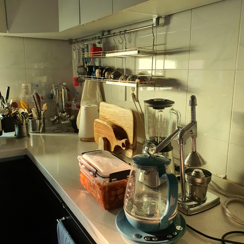 깨끗하게 정리된 부엌에 저녁 햇살이 비추니 그리 행복할 수가 없었습니다.