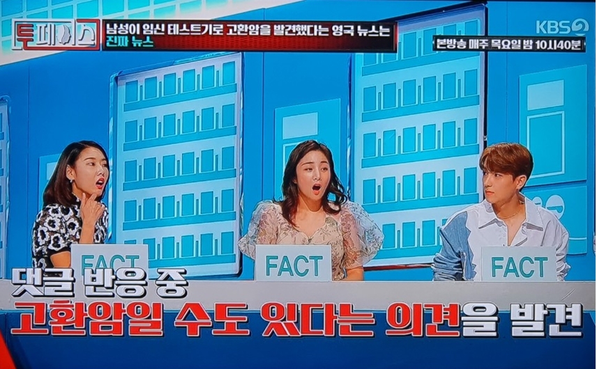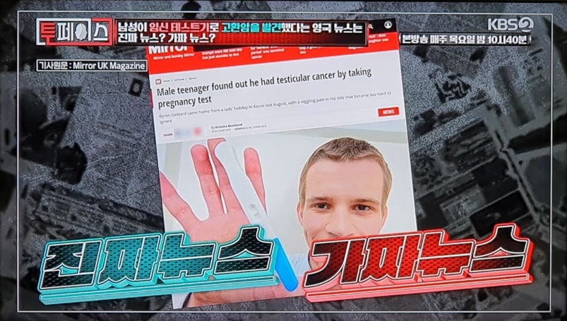 KBS2 에서 방송된 '투페이스' 는 제작진이 보여주는 뉴스가 FACT 인지 FAKE 인지 패널들이 가려내는 예능프로그램입니다. 진짜인지 가짜인지 진위여부를 가려내는 영국의 한 뉴스가 소개되었었어요.