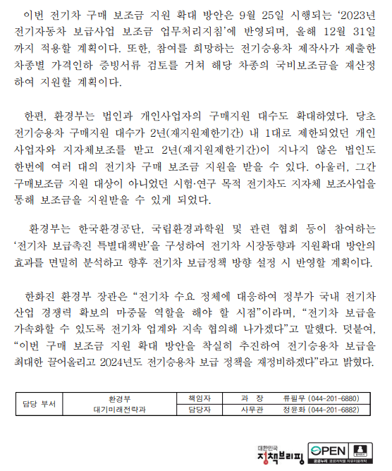 이번 정부의 전기차 보조금 확대 지원 정책은 2023년말까지로 한정적입니다.
