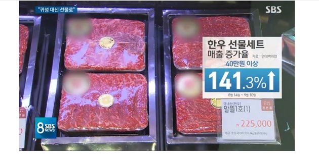 고가의 한우 선물판매량도 급증했다고 하네요.