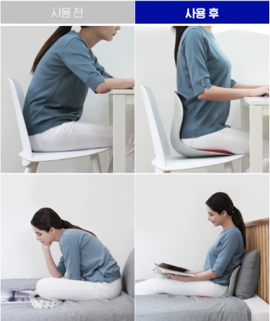 앉으면 등받침이 당겨져 자연스럽게 허리를 앞으로 당겨주어 자세를 바로 잡아주네요.. 이 점이 다른 자세교정 의자보다도 좋은점 인것 같아요. 이 부분이 강점인 것 같네요.