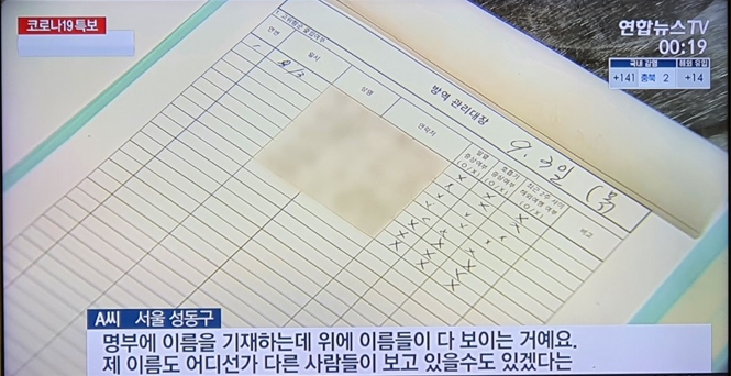 「 개인정보 유출 우려로 수기 출입명부 이름 제외. 」