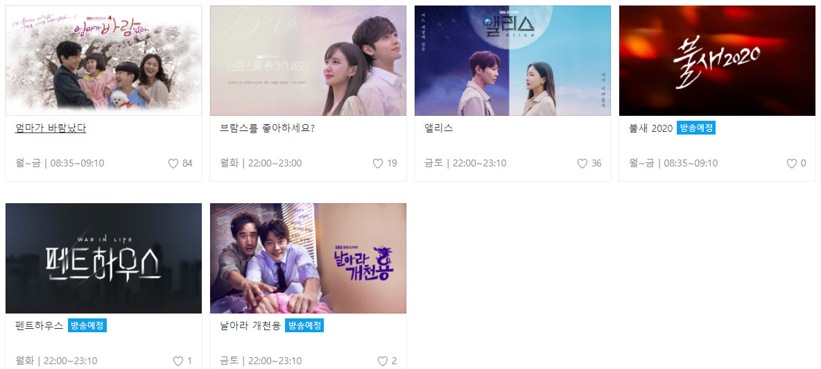 SBS 드라마 편성표