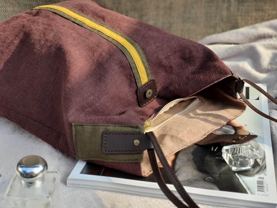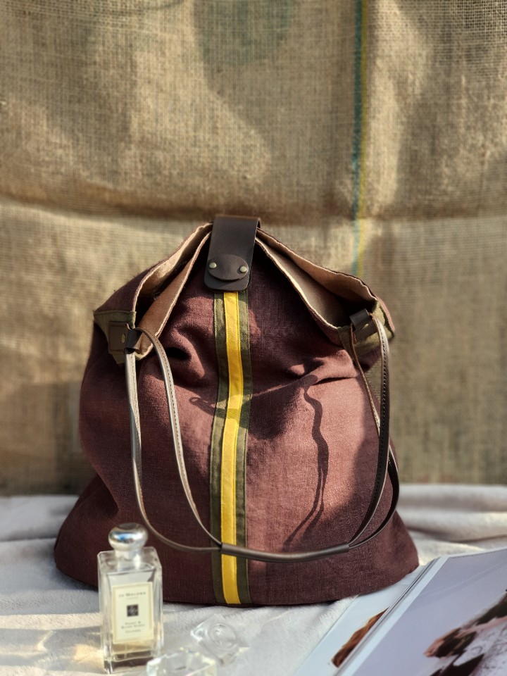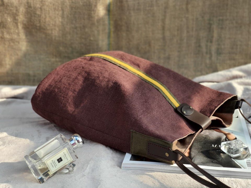 마 100%의 고급 린넨 소재로 가방을 만들기 시작했습니다. 8수의 톡톡함이 매력적인 고급 퓨어 린넨과 어디서도 볼 수 없는 은은한 색으로 염색된 컬러가 패브릭 bag의 퀄리티는 높여주고 있습니다.