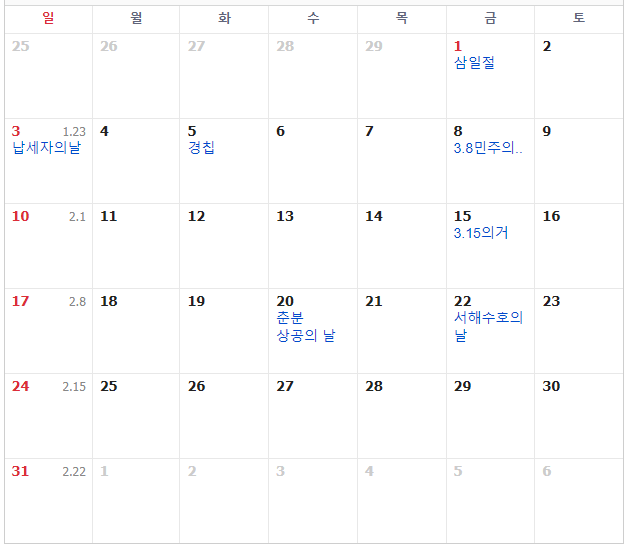 손없는날, 음력날짜 같은 경우는 아래 다음달력을 이용하시면 간편히 알 수 있습니다.