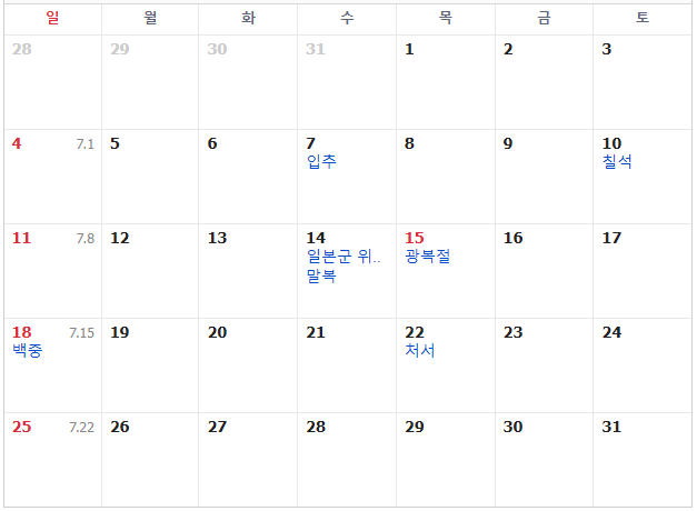 - 8월 15일 ~ 8월 18일(8월 16일 연차 사용)