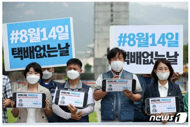 늘어난 배송물량을 소화해 내기 위해 고군분투하던 기사님들이 피로를 이기지 못하고 끝내 사망하는 사고가 연이어 발생하자 민주노총 서비스산업 노동조합 연맹 전구 택배 노조와 한국 통합 물류 협화가 택배기사들의 "휴식권 보장"에 합의하면서 일시적으로 8월 14일 '택배 없는 날' 이 지정이 되었습니다.